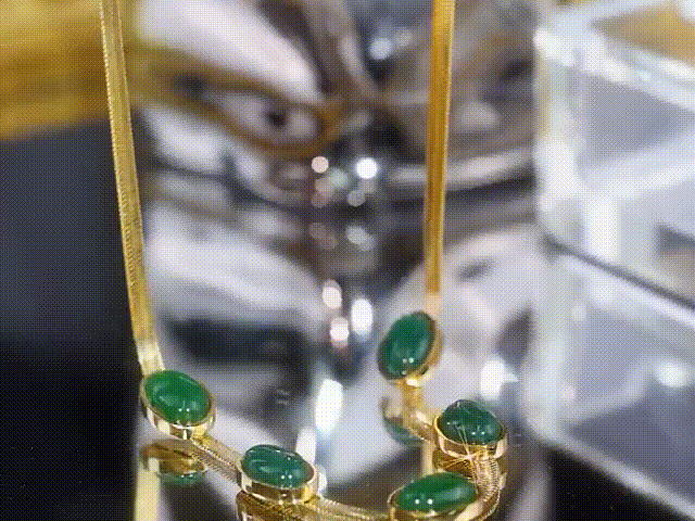 • The Emerald Necklace is delicately designed, measuring a perfect length of 45.3cm. Its intricate chain holds a captivating emerald pendant, showcasing a brilliant green hue that captures attention from every angle. The necklace is adjustable, allowing you to find your desired fit and effortlessly complement any outfit.